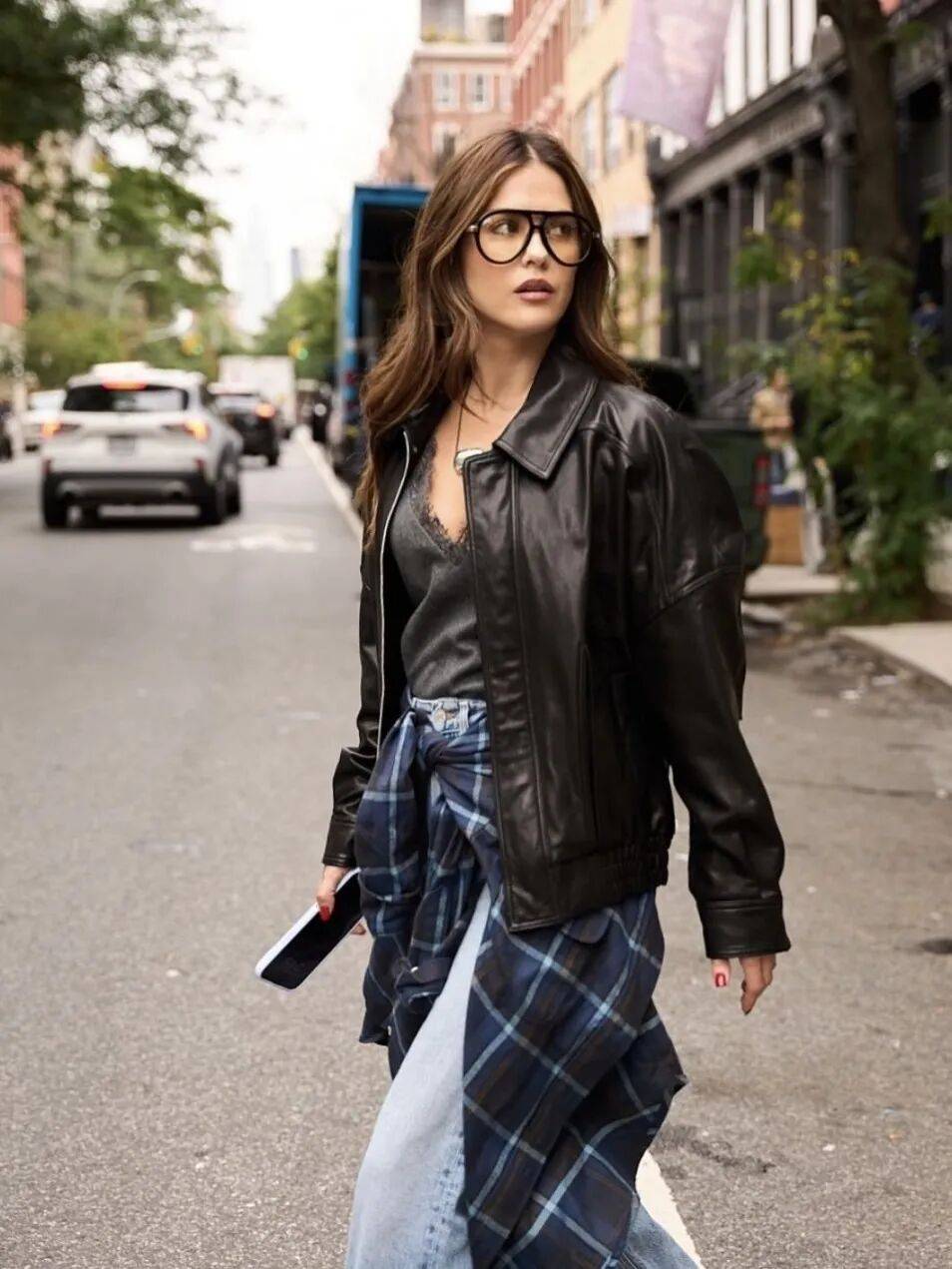 一件格子衬衫、针织衫或轻薄毛衫,随性地系在腰间,巧妙能打破上下比例的僵硬,让腰部有了层次,也在无形中拉高了重心。