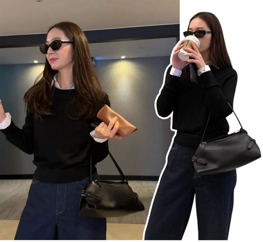 我一开始被种草纯粹是因为郑秀晶的穿搭,黑色线衫和藏青色牛仔,很随意地拎着Ralph,给我的感觉就是很“冷”但又很“雅”。