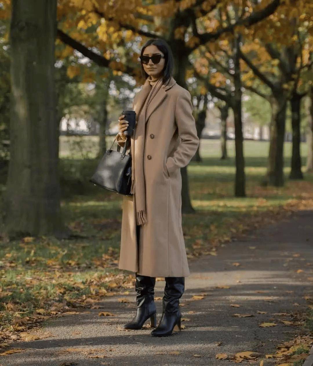 一件质感上乘的米色大衣是衣橱里的价值投资。它可以轻松叠加在任何颜色的穿搭之外,无论是搭配同色系的燕麦色针织套装,还是内搭一身黑色连衣裙,都能彰显出低调优雅的好品位。