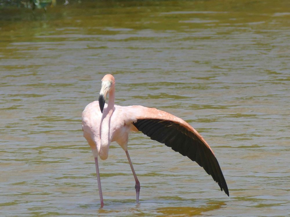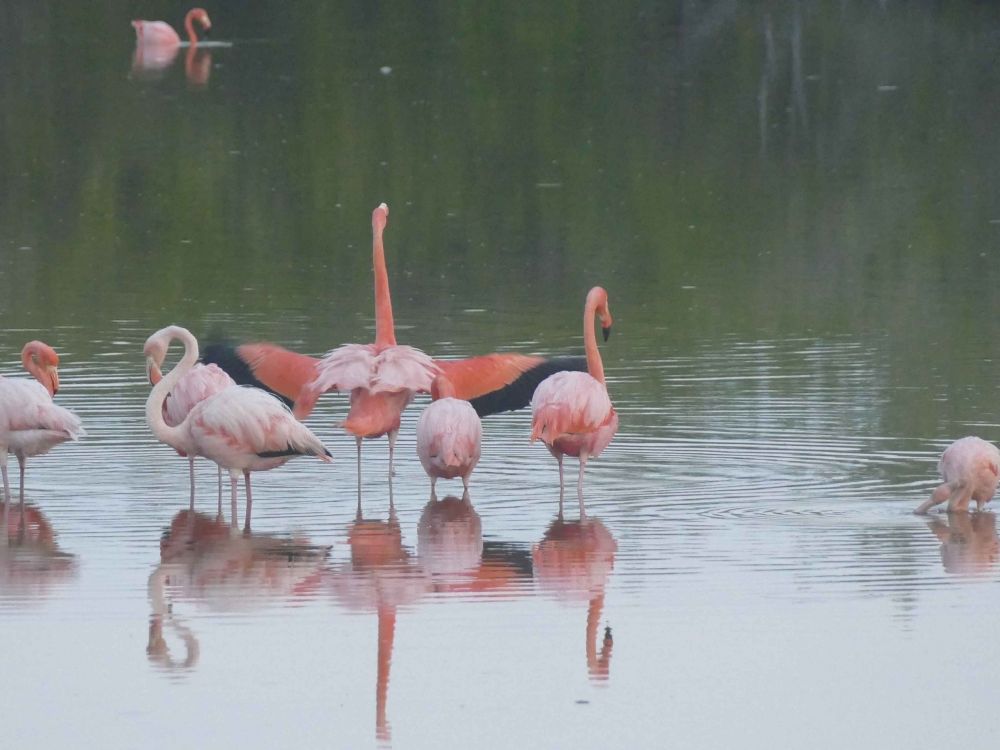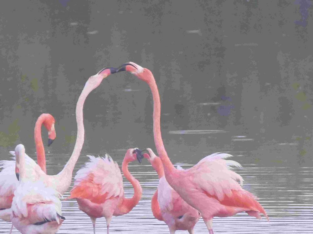 岛上有几处大大小小的浅水湖,那里是火烈鸟(flamingo )栖息的地方。这些在浅水里游荡觅食的粉红色大鸟比非洲的同类更加色彩鲜艳,所以得以玫瑰鸟的美名。有趣的是它们身体的色彩是从它们每日进食的鱼虾而得。“What you eat is what you are” 此言不虚。
