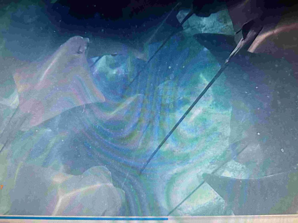 在这里我第一次近距离观赏鳐鱼。一只巨大的黑色鳐鱼拖着长长的尾刺在水中游动,仪态从容高雅,多条鱼儿围绕着它,如同陪王伴驾。我离它如此之近,它背上的白色斑点清晰可见。后来我才知道那是一条Spotted Eagle Ray (视频截图)