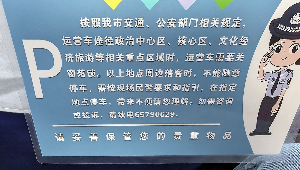 在北京的交通,主要用公交,地铁和滴滴。公交用支付宝出行的北京电子交通卡或乘车码支付。我始终没弄懂二者的区别。公交的大部分乘客是老人,因为老人免费乘车。地铁也可以用支付宝刷码进站。嘀嘀叫车有个问题,北京很多地方不能停车。司机只能停在相邻地点等待。对地形不熟的外地人不太方便。出租车后座上挂了个公安局通知。政治中心区,核心区,文化经济旅游等重点区域不能随地停车,同时必须关窗落锁。地铁,火车站进站行李都要过安检机器。中国常常夸赞自己是世界上最安全的国家。但其他国家都没有像中国一样在日常生活中如临大敌。貌似强大的政府本质上却很虚弱。