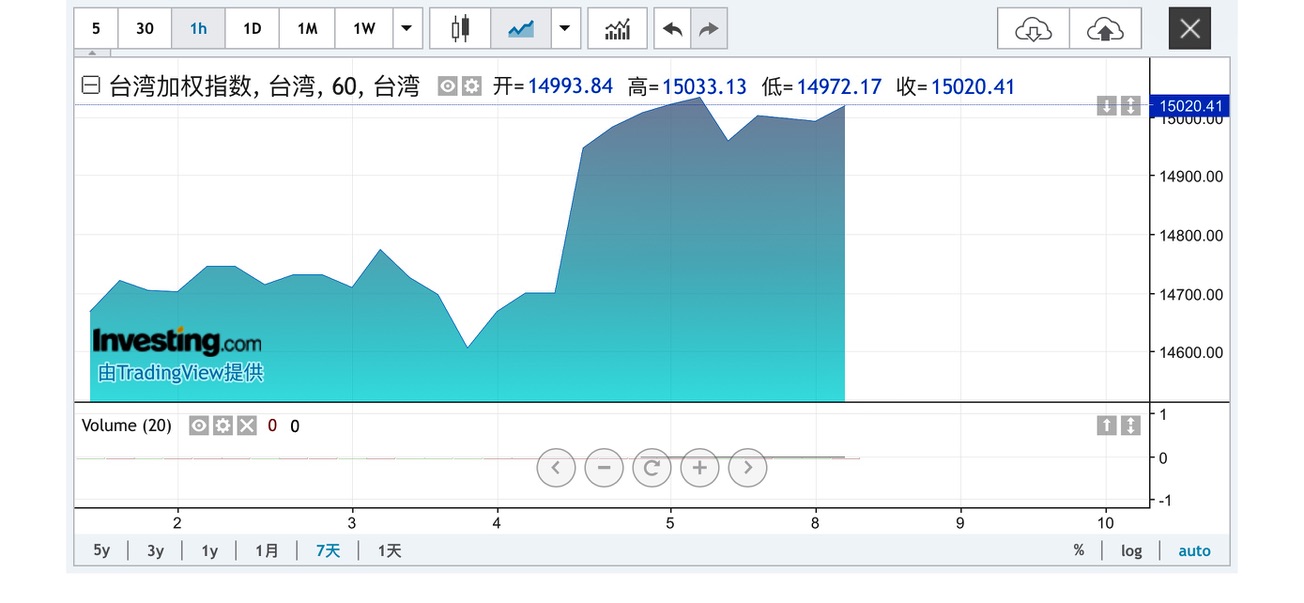 一觉醒来,周一台湾加权指数只跌了0.10%-15.63点,还在1.5万点上坚挺…明天可能会跌,因为美国的科技股今天跌演习没有实际结果,台湾百姓生活如常,国军依然斗志昂扬,西方照样谴责演习。这可是从来没有过的现像有人统计,改革开放以来台湾商人往大陆投资了近几千亿$,形成了占大国经济增长主力的出口50%,其中出口企业的30%,是台商。残酷的现实,严重地拖累了锁[