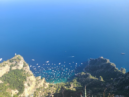 孩子从Capri(Italy)发回照片,点点舟艇白鸟似的栖息在岩下海面。地中海啊,让心飞过去吧。