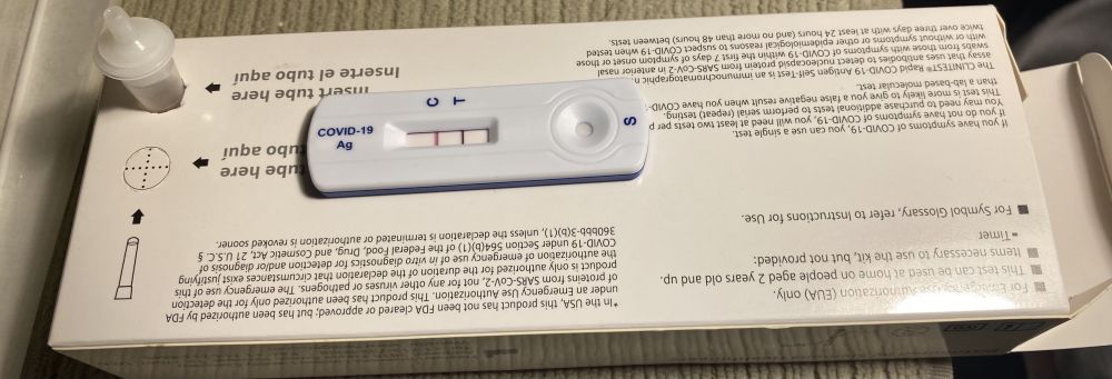 很少感冒发烧的我发烧感冒了,咳嗽得厉害。1/15周三起来发现不对劲,一量体温,39.1度,以为就是流感,以为那几天风大,风邪,吹感冒了。因为去年回家咳嗽用莲花清效果不错,就找出家里的莲花清服用。周四烧退下去一些,38.3度,晚饭后某人找出测试kit,说测一下吧,一测居然是新冠,赶紧睡前服用布洛芬。周五烧退至37.6。某人坚持让我给家庭医生打电话,求药,备着。[