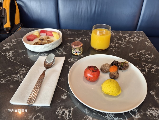 下飞机时间还早,我们先在机场休息室吃早餐。不得不说,这里的早餐比很多机场丰富太多,也难怪常常听到别的航空公司抱怨竞争不过阿布扎比——毕竟国家补贴真不是盖的。
