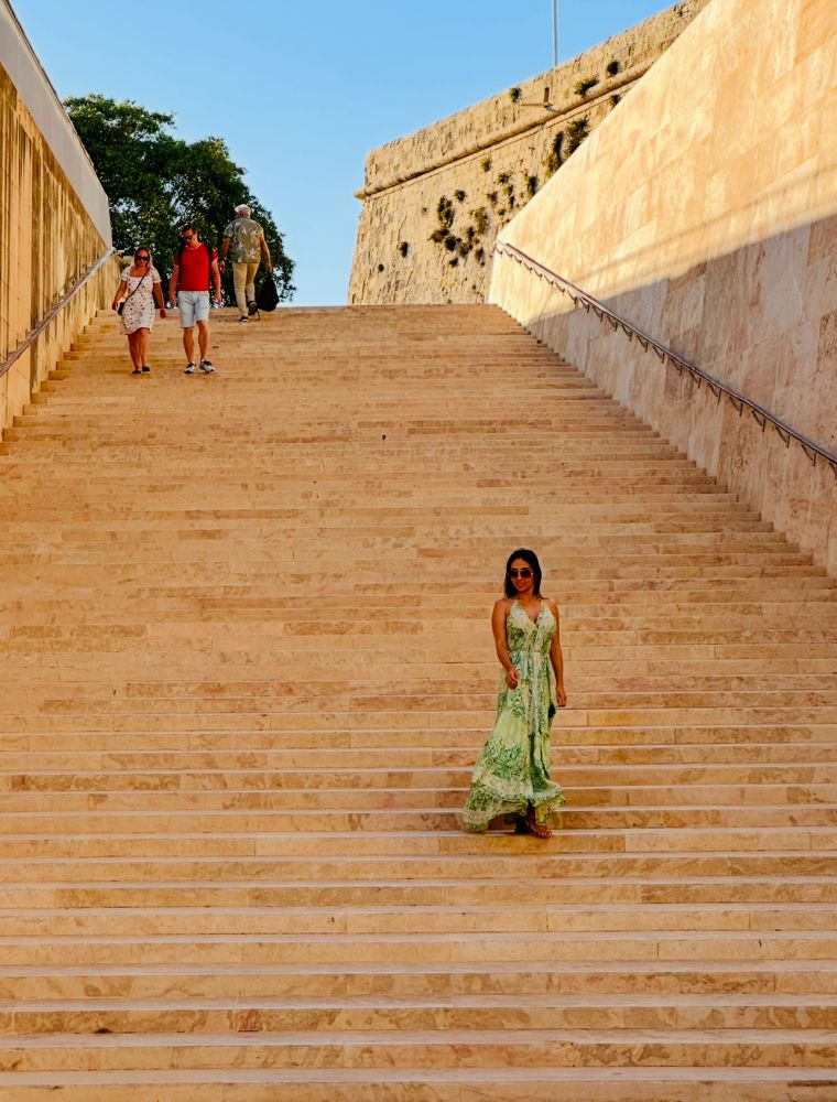 这样的街角宗教雕塑在瓦莱塔街头到处可见。教堂和房屋随坡而建,漂亮的石板阶梯一直通向共和大街。