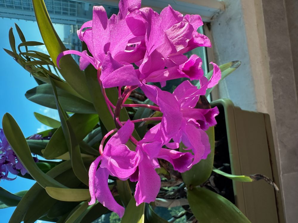 兰花中比较高贵的品种,整整开了11簇,每簇11朵,早上起来阳光直射在花瓣上的时候,那个像要爆出来的紫,绝对让你看了还要看的。