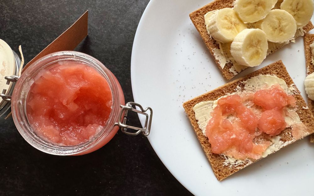 这是亲戚用自家园里李子亲自制作的!自制的比买的好吃很多,更新鲜,甜蜜恰当不过度!亲戚还送了我一瓶她自制的李子浓缩果汁,同样的果香迷人!