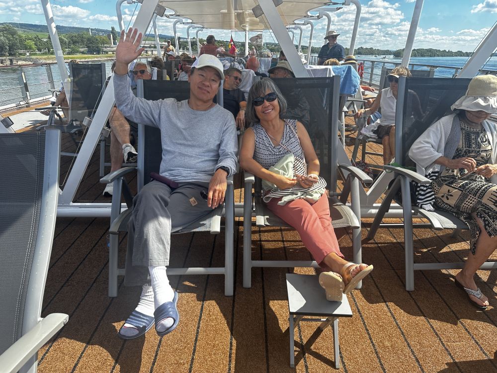2. 在船顶甲板(Sun Deck)上,大家沐浴着阳光,迎着徐徐的河风,吃着冰激凌、聊天、拍照,尽情享受莱茵河两岸的迷人景色。