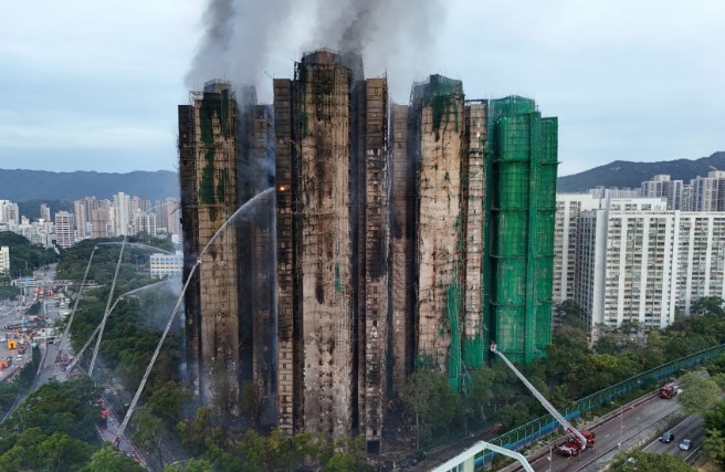 - ▲ 26日下午,香港新界大埔区的高层住宅小区宏福苑发生火灾。