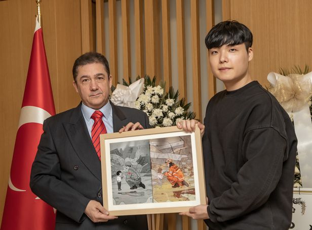 土耳其驻韩国大使馆表示:“明民浩画家的作品令人大受感动,是大使馆方面率先提出举行转交仪式。”此番转交了7幅画,将分别转交给土耳其总统室、土耳其外交部和土耳其驻韩国大使馆等。