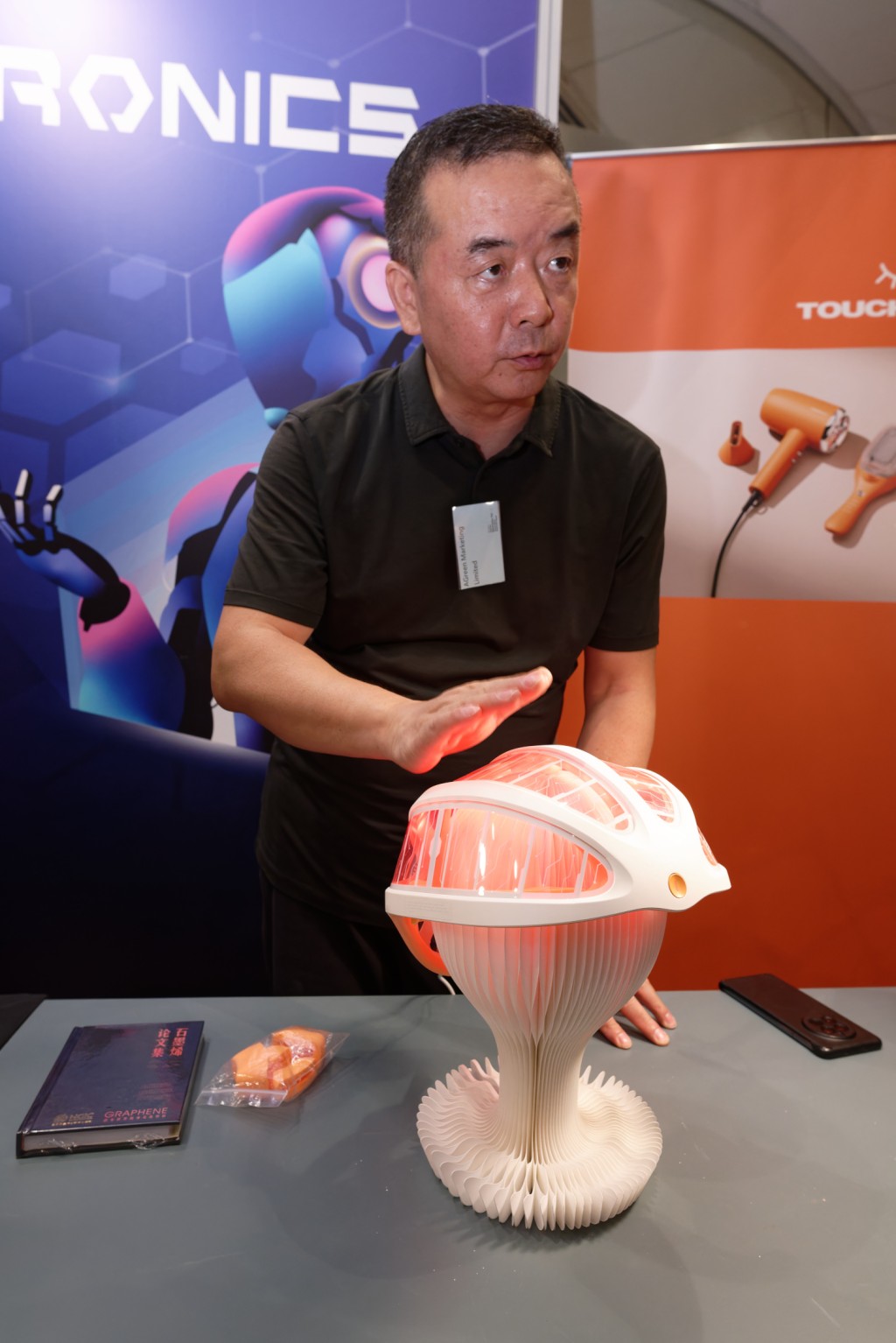 近年因人口老化令樂齡產品如雨後春筍,各種專為長者設計的健身與健康科技產品如智能GPS拐杖,融合GPS即時追蹤、緊急求助警報,以及障礙物偵測系統等有助銀髮族及家人改善生活質素,均成為今次展覽的展示場。其中TOUCHBeauty帶來最新推出的cleatouch石墨烯頭部養護儀,透過遠紅外線有助促進血液循環、活化細胞,不但有生髮及延緩白髮功效,更可紓緩神經協助睡眠。AGreen Marketing負責人更表示,產品藉着是次展覽首次進軍香港,希望藉此打開香港市場。