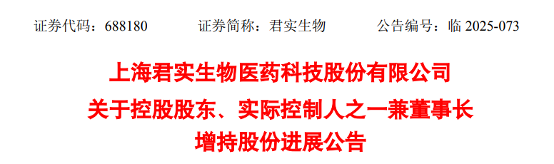 公告显示,上海君实生物医药科技股份有限公司控股股东、实际控制人之一兼董事长熊俊拟自 2025 年 4 月 12 日起 12 个月内,增持公司 A 股股份及 H 股股份,合计增持金额不低于人民币 1 亿元,其中 A 股增持金额不低于人民币 5000 万元。