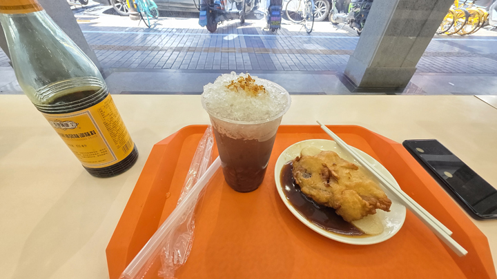 一份排骨年糕,一杯上海老式红豆挂花刨冰,一共31元人民币。