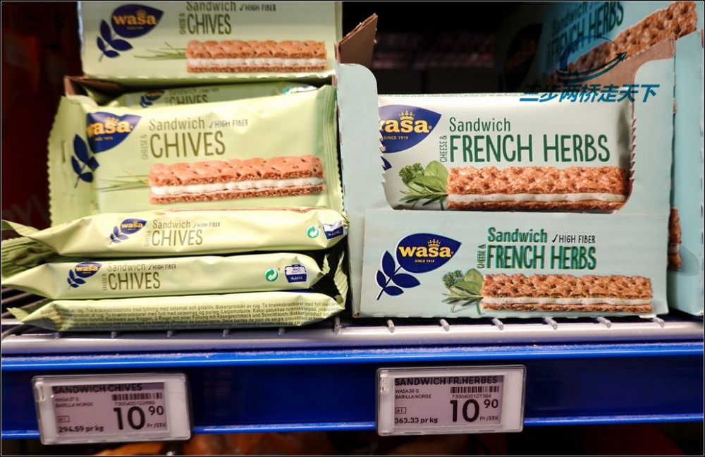 挪威超市里最常见的夹心脆饼。我尝遍了每种口味的,可以吃,但不是首选,我宁愿买净脆饼,夹自己喜欢的食物,比如,牛油果和吞拿鱼。需要控糖的北美朋友,可能熟悉WASA这个牌子的挪威脆饼,这是挪威最大众化的食物,比面包还普及。