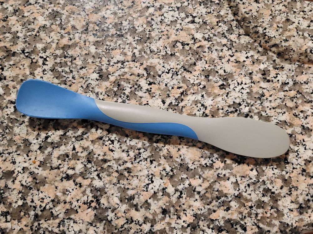 有一次逛梅西,这个在减价台子上,今天发现用它比用跟锅来的竹铲子好用多了,我这个好像才几块钱,非常耐用,就是翻薄饼用的。