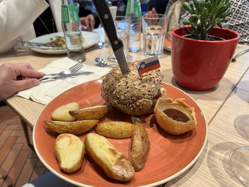 这是我今天的晚餐,一个巨无霸的斯洛文尼亚汉堡,一天的行程在饱腹与满足中画上完美句号。