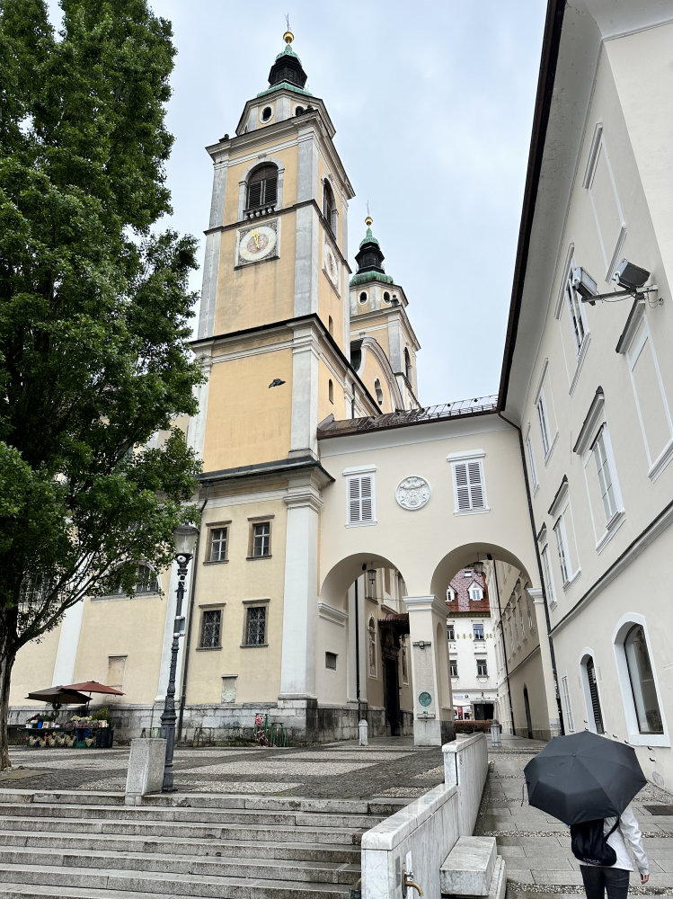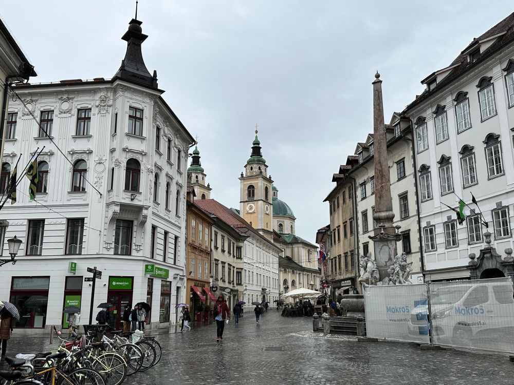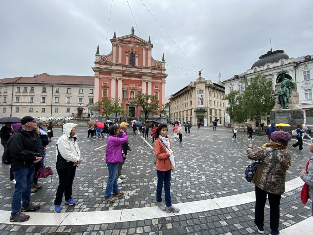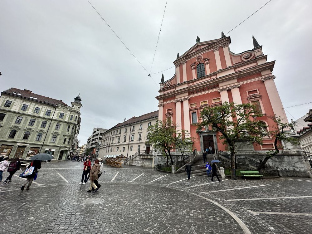 普雷舍伦广场(Prešernov trg)是卢布尔雅那最具活力的城市中心,多条街道在这里交汇,形成一个宽阔的圆形步行广场。广场周围环绕着色彩柔和的历史建筑,是市民与游客最常聚集的地方,也是举办节庆、音乐会和各类公共活动的主要场所。