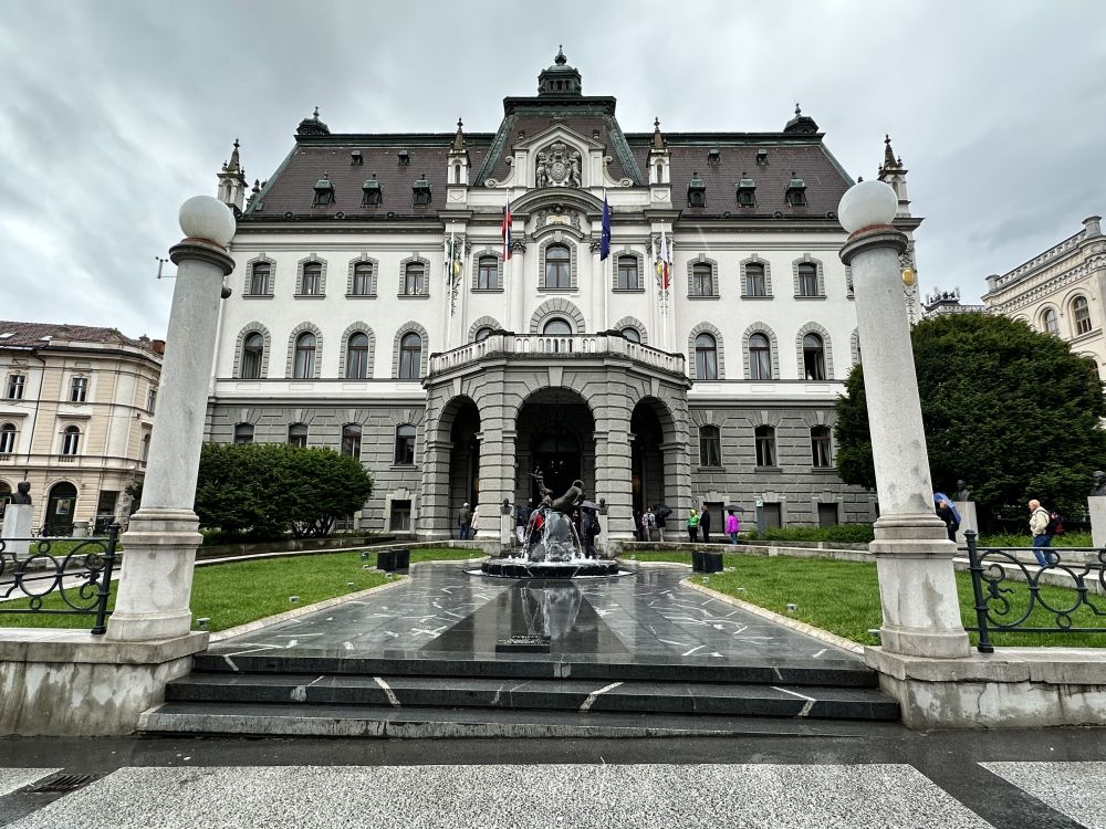 卢布尔雅那大学成立于1919 年,是斯洛文尼亚历史最悠久、规模最大的高等学府,也是中欧最具声望的大学之一。大学主楼位于市中心,外观典雅,带有明显的奥匈帝国时期建筑风格,灰白色的立面和对称的装饰给人庄重而优雅的感觉。