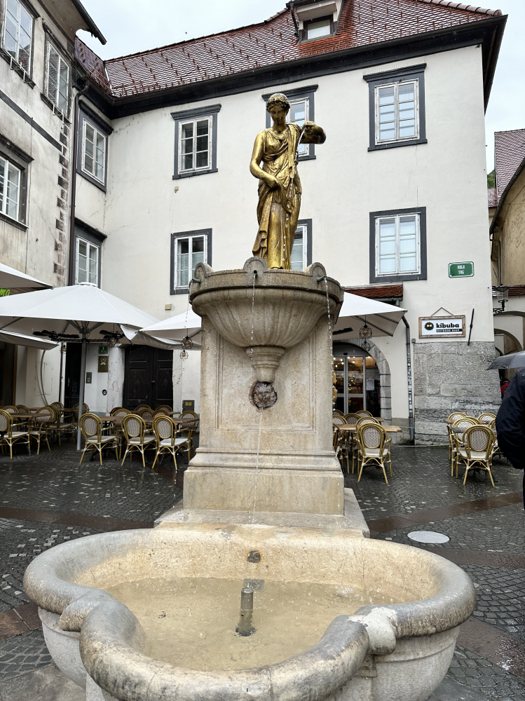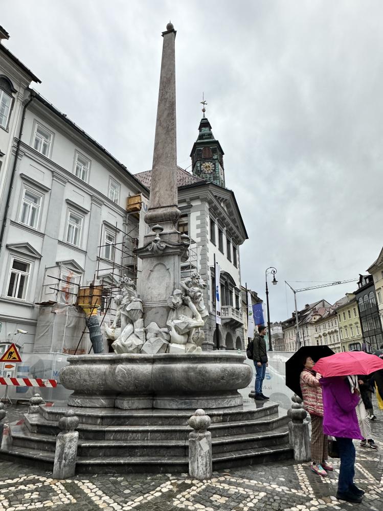 罗巴喷泉(Robba Fountain)位于市政厅前,是卢布尔雅那最具代表性的巴洛克艺术作品之一。喷泉建于18世纪,其设计灵感来自罗马喷泉。三位象征卡尼奥拉地区三大河流—萨瓦河、克尔卡河和柳布尔雅尼察河—的石雕人物环绕中央柱体,姿态优雅而富有力量。