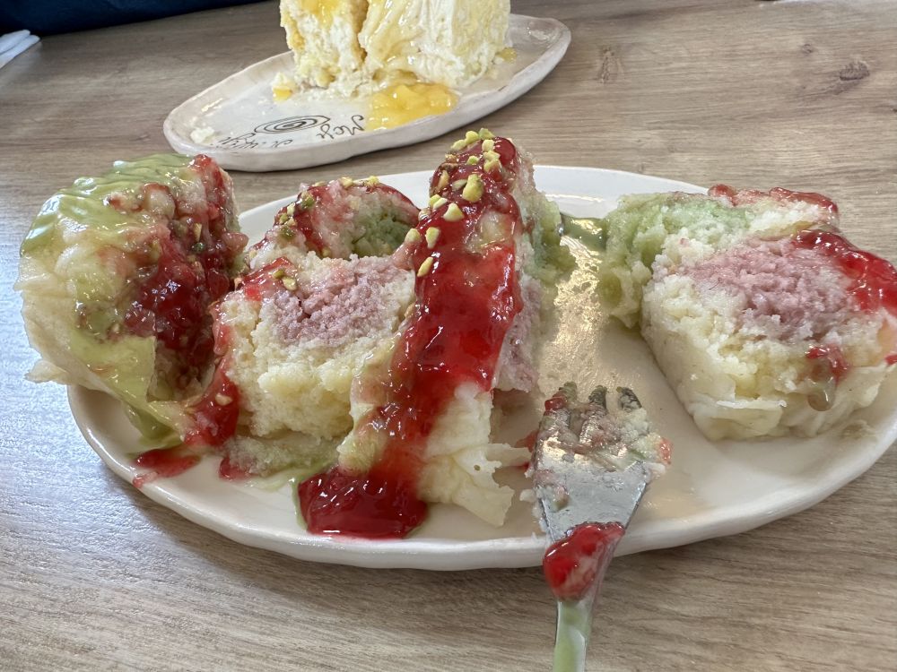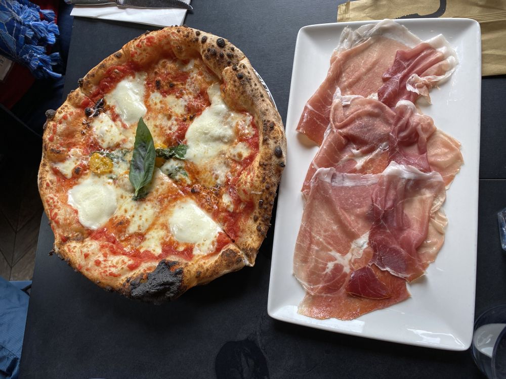中午,我们在河边一家餐厅享用午餐,品尝了柴火烤制的披萨和新鲜的火腿。披萨香气扑鼻、口感酥脆,搭配上鲜嫩的火腿,每一口都让人满足又惬意,为上午的漫步画下了完美句点。