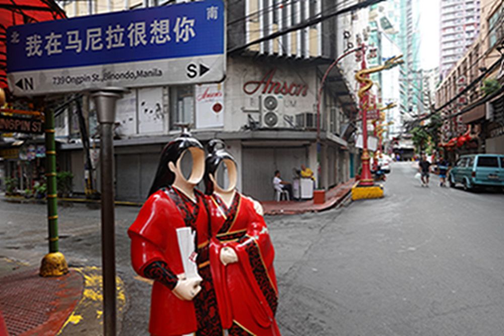 从“我在马尼拉很想你”的牌子上的英文可以看出(岷伦洛区 Binondo)和(王彬街Ongpin Street)