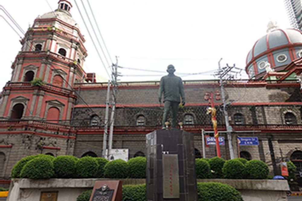 这座塑像不是孙中山,也不是蒋介石,是王彬(Roman Ongpin)。他是菲律宾独立运动中的华人慈善家,唐人街的主干道“王彬街”以其命名