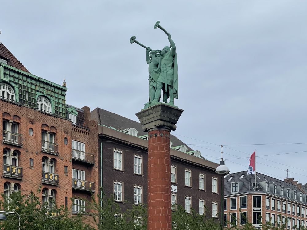 市政厅附近一个大楼上有组镀金旋转雕像《天气女孩(Vejrpigerne)》。晴天时出现的是一位骑自行车的女孩;下雨时出现的是一位撑着伞的女孩,身边跟着一条狗。