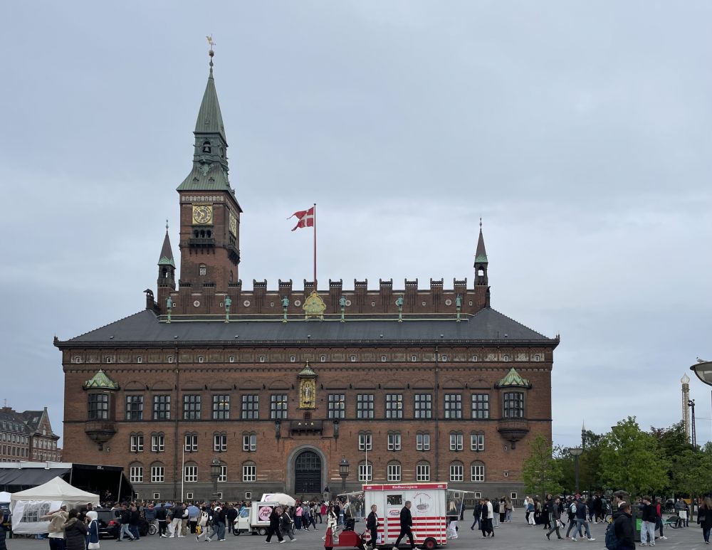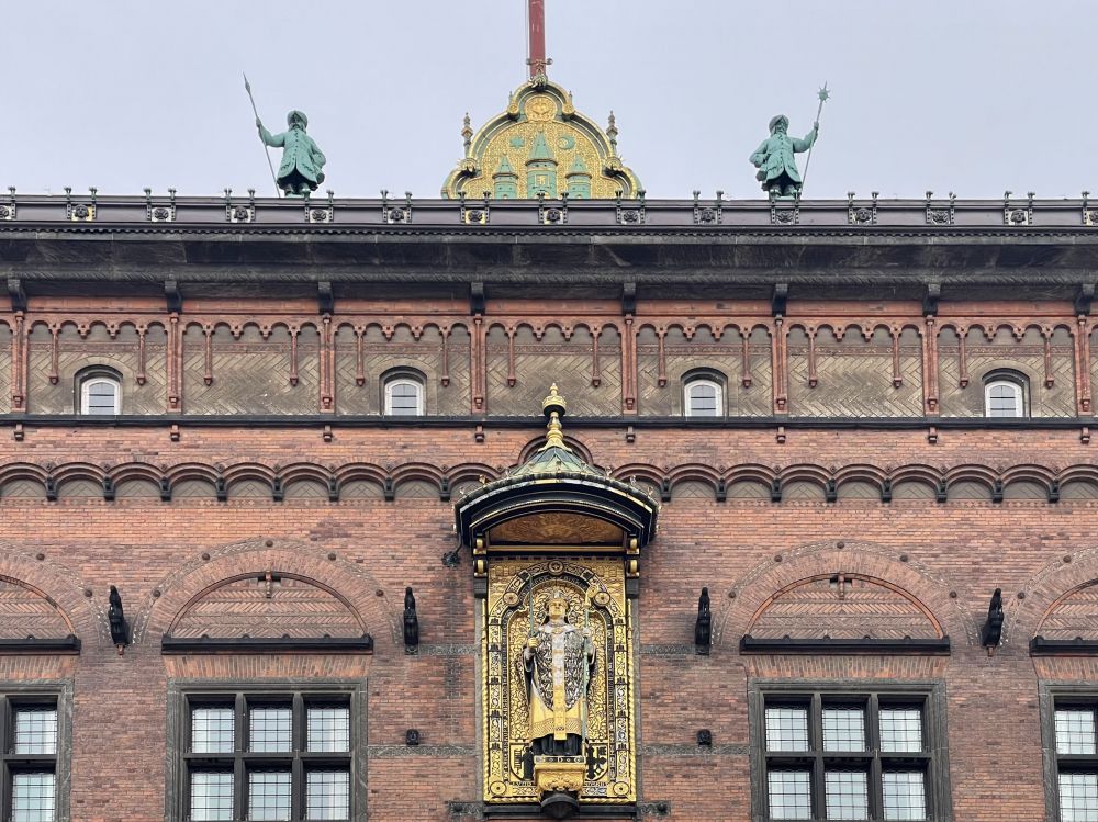 市政厅正门上方的金色雕像是哥本哈根的创建者,阿布萨隆(Absalon, 1128 – 1201) 。
