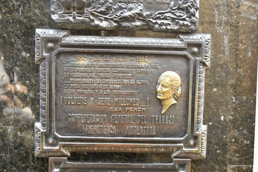 墓园里最著名的就是艾薇塔的墓了,参观时甚至都要排队。艾薇塔是总统贝隆的夫人,她出身穷苦,靠自己的努力跻身于新闻界,帮助贝隆实现政治理想。当上总统夫人后能为穷苦人说话,并为阿根廷妇女争得了选举权。所以深得阿根廷百姓的爱戴,名气比她的总统丈夫大多了。一曲唱响全世界数十年的歌曲“阿根廷,请别为我哭泣”更是把她推向了神坛。现在,全国各地到处都能看见她的雕塑和画像。