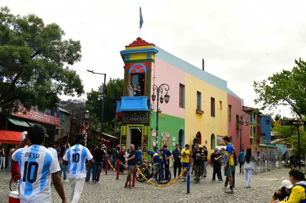 来来往往的人群中许多穿着阿根廷足球队服,背后是马拉多纳和梅西代表国家队出征时的十号。人们在博卡区的著名彩色房子前排着队,只为了上到二楼去和梅西的雕像合个影。街头上到处是自发的演唱会,有以歌唱为主的,有以鼓乐助兴的,载歌载舞的多在租来的公共汽车上,一面面阿根廷国旗从车窗探出挥动着,像是潘帕斯草原上挥动的马鞭。人们在车行进中激情澎湃的边唱边舞,并且号召着在街上行走或驻足观看的人们加入,几条街区的气氛都达到了燃点。