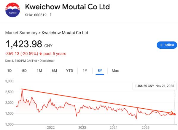 进入2025年,茅台酒的价格如江河日下,跌跌不休。
