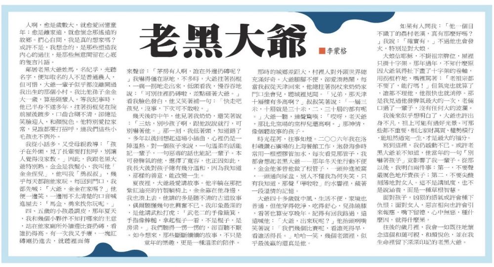 邻居老黑大爷姓马,大名马纪孚。我想能取出这个名字的人肯定不是目不识丁的农民。但是很遗憾,老黑大爷却好[