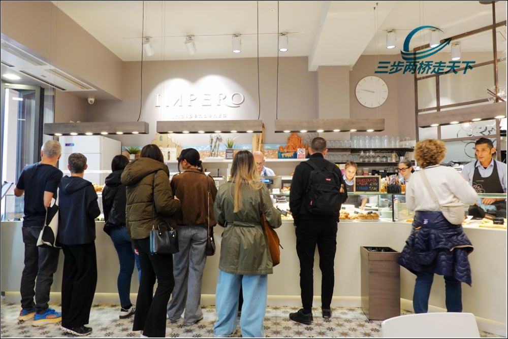 早晨九点离开旅店,步行前往世界上最古老的大学博洛尼亚大学(UniversityofBologna)。途中在一家颇具人气的café吃了早餐:一杯香浓的卡布奇诺与一只涂满开心果酱的牛角包。阳光透过拱廊洒在街面,B[