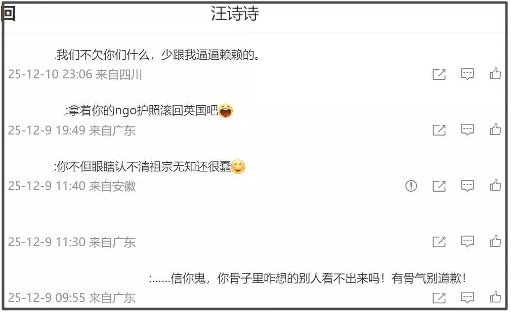 汪诗诗的道歉博文评论区,至今仍是骂声一片。在海外社媒发限定动态,又在内地社媒道歉,这个“限定”也是被她玩明白了。