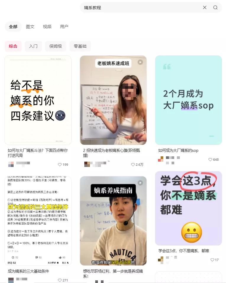 在社交媒体上,许多大厂博主会发布这类“成为大厂嫡系”的教程,其中的要点包括但不限于:主动承担别人不愿意做的事、站在老板角度想问题、不分场合地卷工作、有底线地背锅,等等。