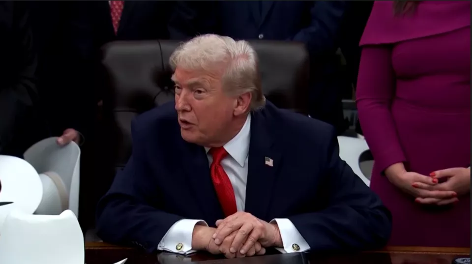 当地时间12日晚些时候,特朗普在白宫对民主党人公布的新一批爱泼斯坦案相关照片作出回应。图源:外媒