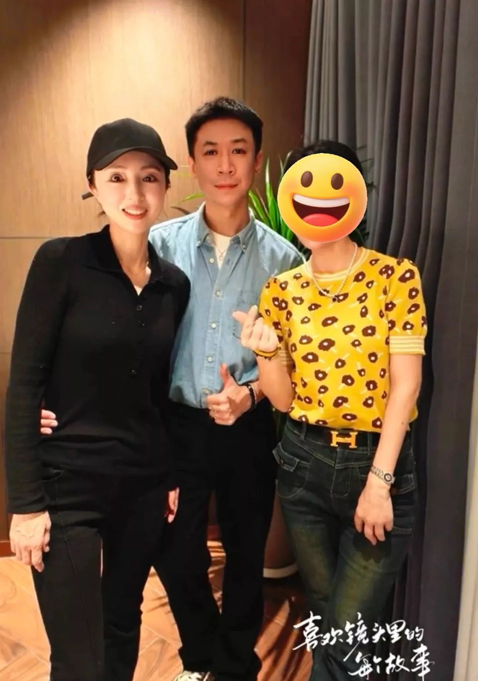 董璇今年46岁了,状态真的保持得超好。她穿了一身黑色衣服,又酷又有型,紧身的打扮看起来身材也没变化,戴着一顶黑色棒球帽,衬得脸更小了,特别精致。她一直开心地和大家比心,特别配合。