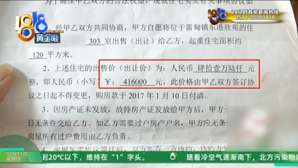郑大姐:我房子是跟小孩子的爸爸买的,当年户口本上也是离异的状态。他爸亲手签的合同,现在办证把名字写在他女儿的名下,叫他前妻带着她女儿来收房,房主也不来处理,也不出面。他这个好像就是,全家给我们设的一个套,因为我买房子的钱是付掉的。
